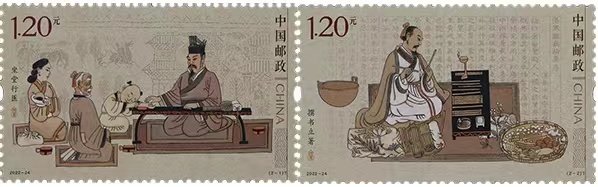 10月22日,《張仲景》特種郵票發(fā)行。該郵票1套2枚,小型張1枚,由劉金貴設(shè)計(jì)。郵票第1枚“坐堂行醫(yī)”,畫面表現(xiàn)了張仲景任長(zhǎng)沙太守時(shí),開放公堂為百姓治病的場(chǎng)景。第2枚“撰書立著”,畫面表現(xiàn)了張仲景編撰《傷寒雜病論》、著書研醫(yī)的場(chǎng)景,背景運(yùn)用《白云閣藏本〈傷寒雜病論〉序》,突出主題。小型張“張仲景像”,人物線條挺勁流暢、形象刻畫生動(dòng),塑造了張仲景施仁術(shù)、濟(jì)蒼生的大醫(yī)氣度。畫面背景襯以小柴胡湯方原文,凸顯博大精深的中醫(yī)藥文化。