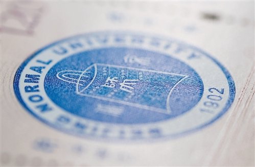 液晶油墨的耀眼質(zhì)感?!侗本煼洞髮W(xué)建校一百二十周年》紀(jì)念郵票在充分尊重和挖掘原作風(fēng)格的基礎(chǔ)上,集雕刻之所長(zhǎng),采用一版雙雕工藝印刷。其中,?;詹糠质褂昧藢iT開發(fā)的液晶雕刻深藍(lán)特種油墨,在太陽(yáng)光照射下可以直接觀察到(見圖二)。雕刻油墨呈現(xiàn)璀璨奪目的細(xì)小閃光猶如星空般耀眼,凸顯北師大?;盏木€條美感,同時(shí)使校徽顏色厚重、有力,票面熠熠生輝。