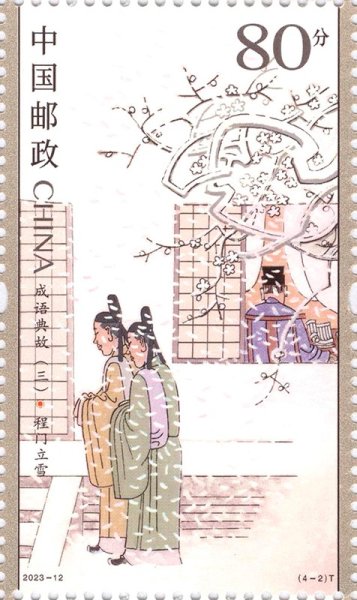 2023年7月15日,《成語典故(三)》特種郵票發(fā)行。該套郵票一套4枚,郵票圖案名稱為鐵杵成針、程門立雪、韋編三絕、孺子可教。