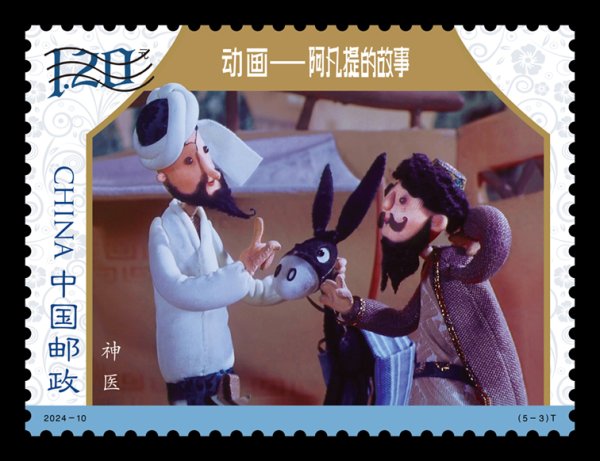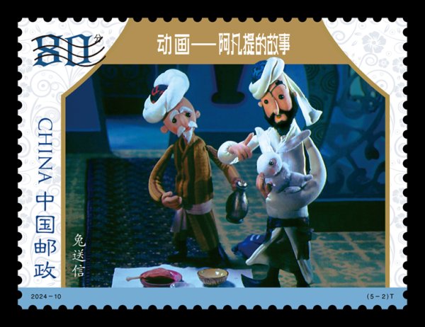 中國(guó)郵政定于2024年6月1日發(fā)行《動(dòng)畫——阿凡提的故事》特種郵票1套5枚,郵票圖案名稱為賣樹蔭、兔送信、神醫(yī)、寶驢、種金子。全套郵票面值5.20元。郵票計(jì)劃發(fā)行數(shù)量為580萬套。
