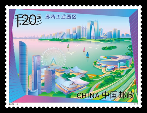 中國郵政定于2024年6月10日發(fā)行《蘇州工業(yè)園區(qū)》特種郵票1套1枚,郵票圖案名稱為蘇州工業(yè)園區(qū)。全套郵票面值1.20元,計劃發(fā)行數(shù)量690萬套。