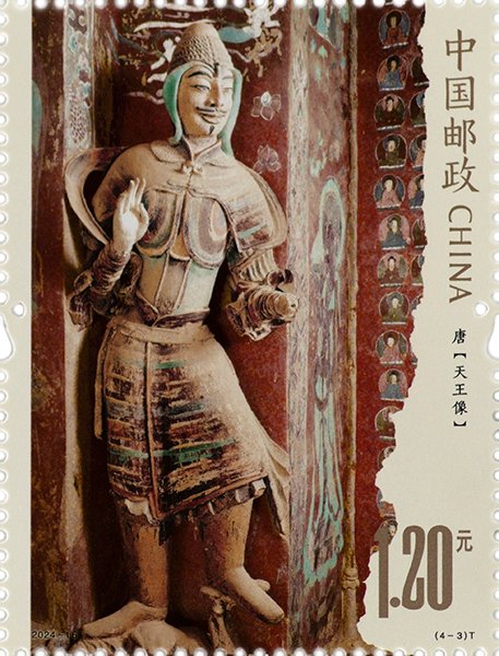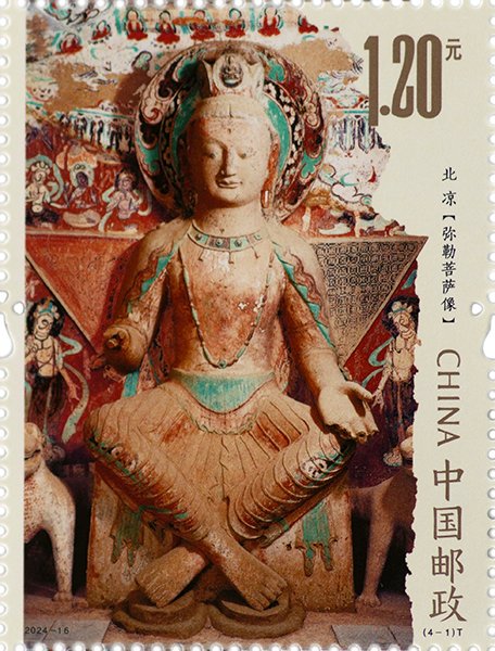 中國郵政定于2024年8月3日發(fā)行《莫高窟(二)》特種郵票1套4枚、小型張1枚,郵票圖案名稱為北涼彌勒菩薩像、唐脅侍菩薩像、唐天王像、唐供養(yǎng)菩薩像,小型張郵票圖案名稱為隋釋迦佛一鋪。全套郵票面值10.80元。郵票計劃發(fā)行數(shù)量為620萬套,小型張530萬枚。